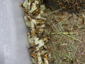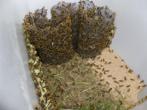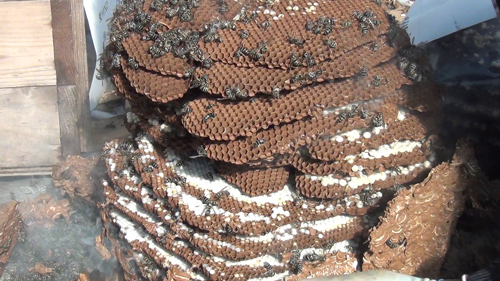 Extraction de larves et de nymphes d’un rayon de nid de guêpe, Kushihara, Japon