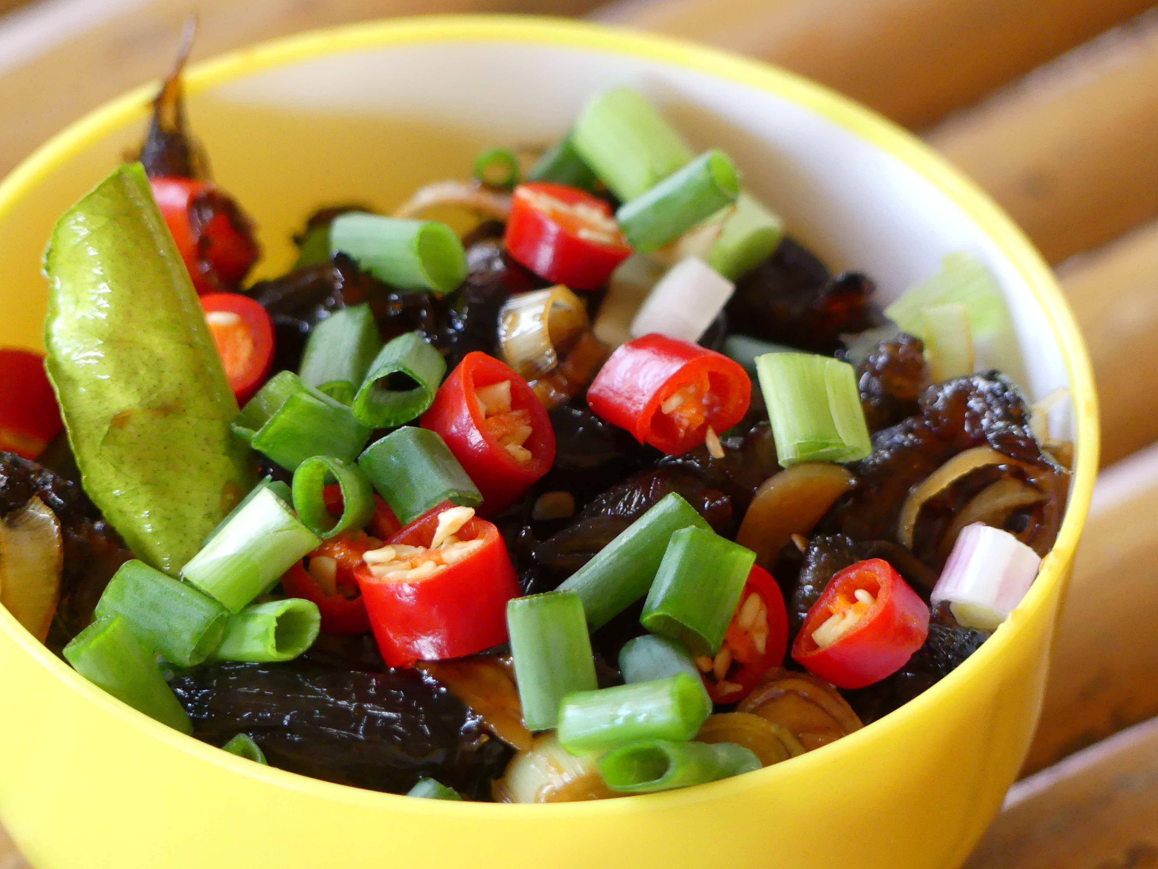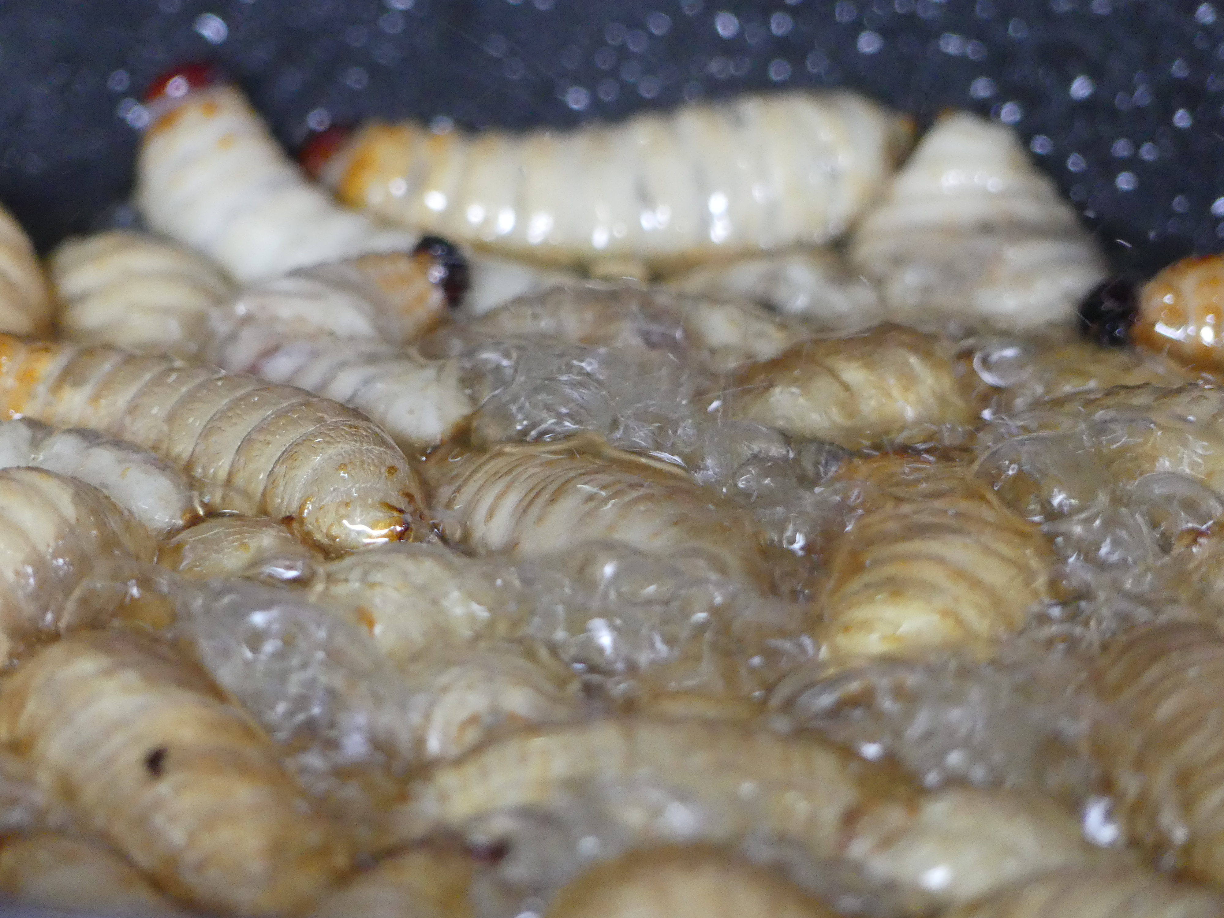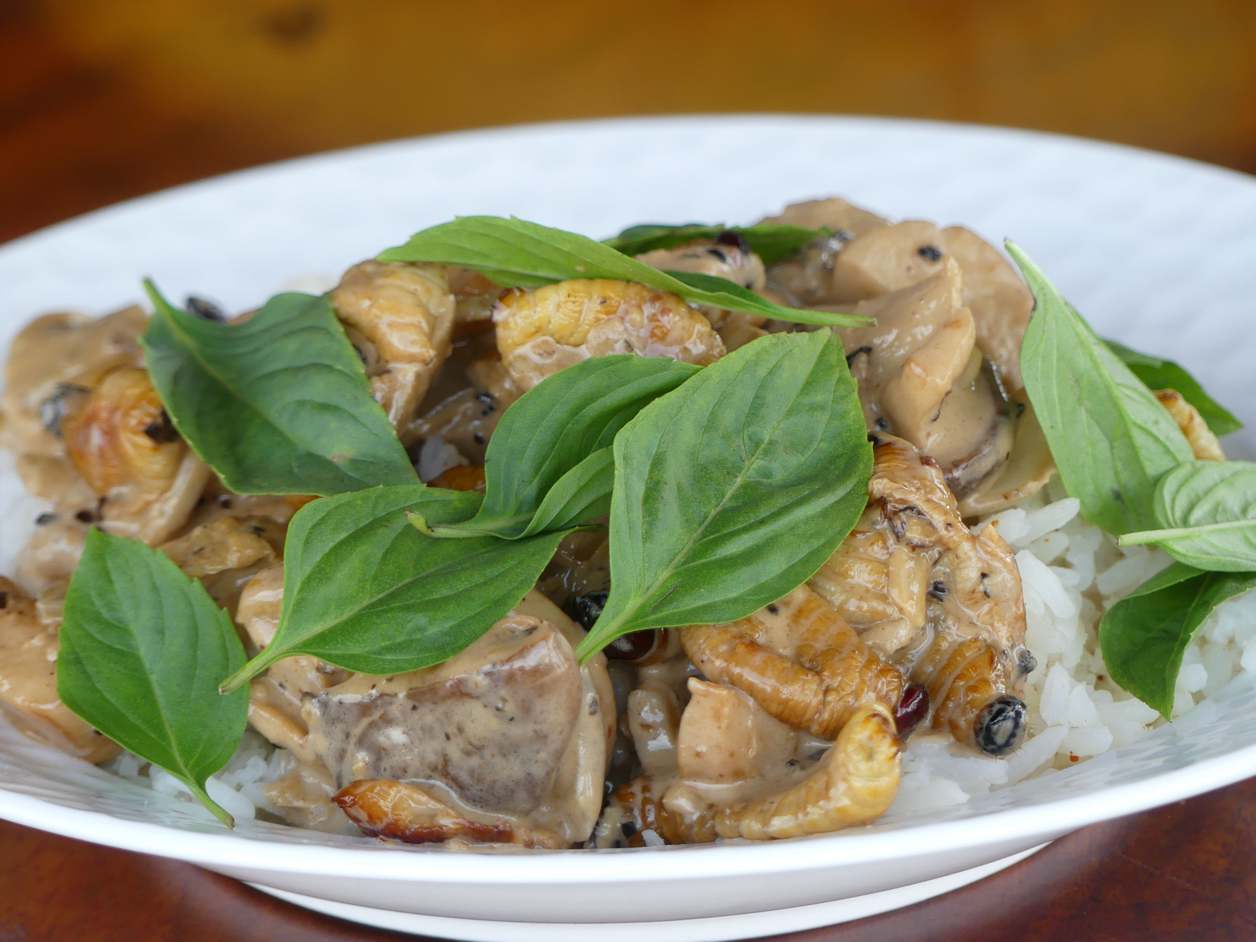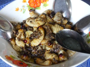 Poêlée forestière aux larves de charançon, Surat Thani, Thaïlande