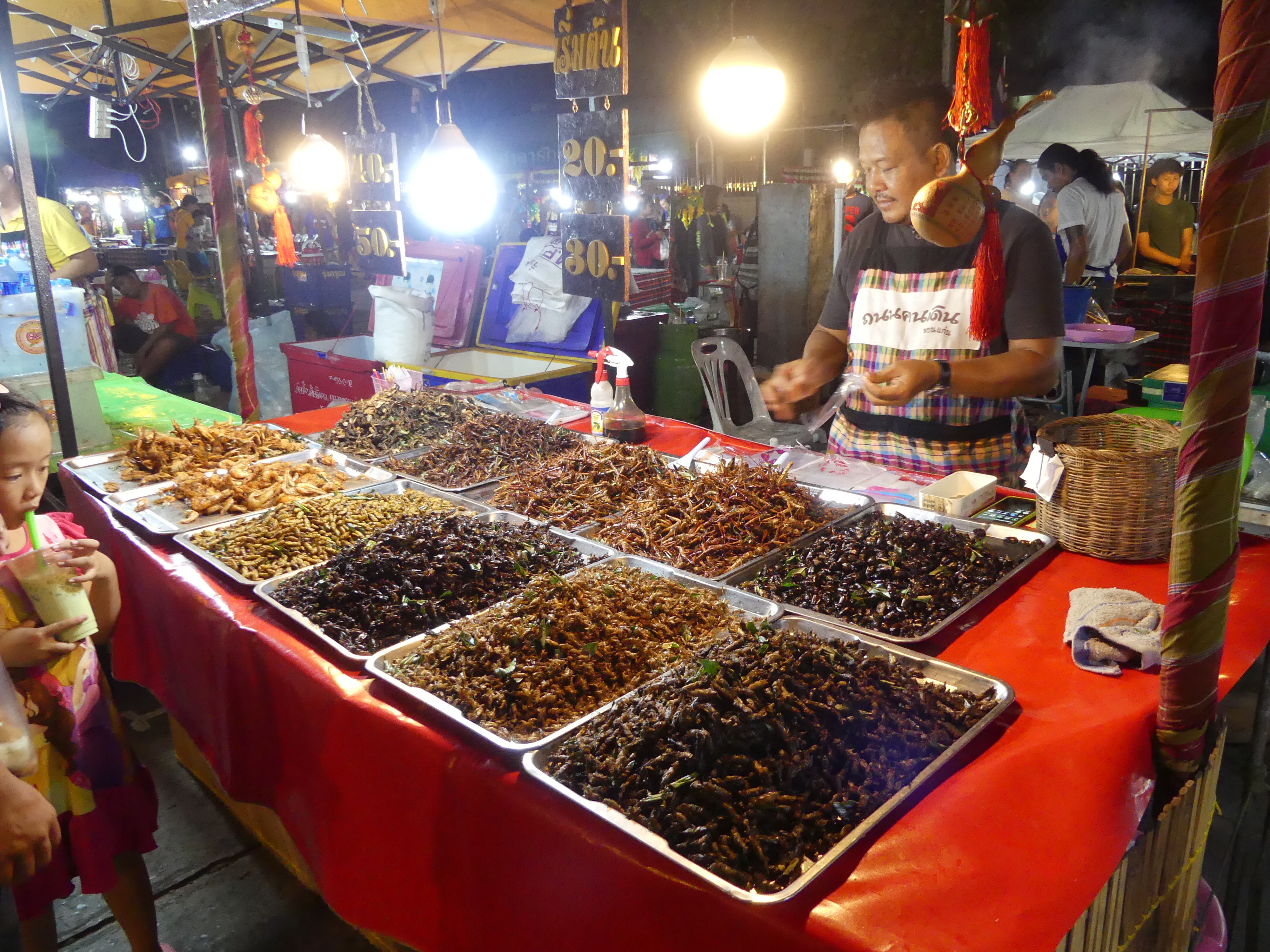 Insectes frits, marché de nuit de Khon Kaen, Thaïlande