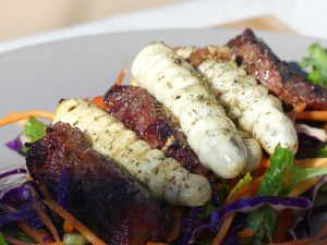 Larves de witchetty et steak de kangourou, Mudgee, Australie