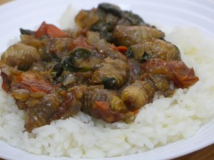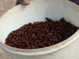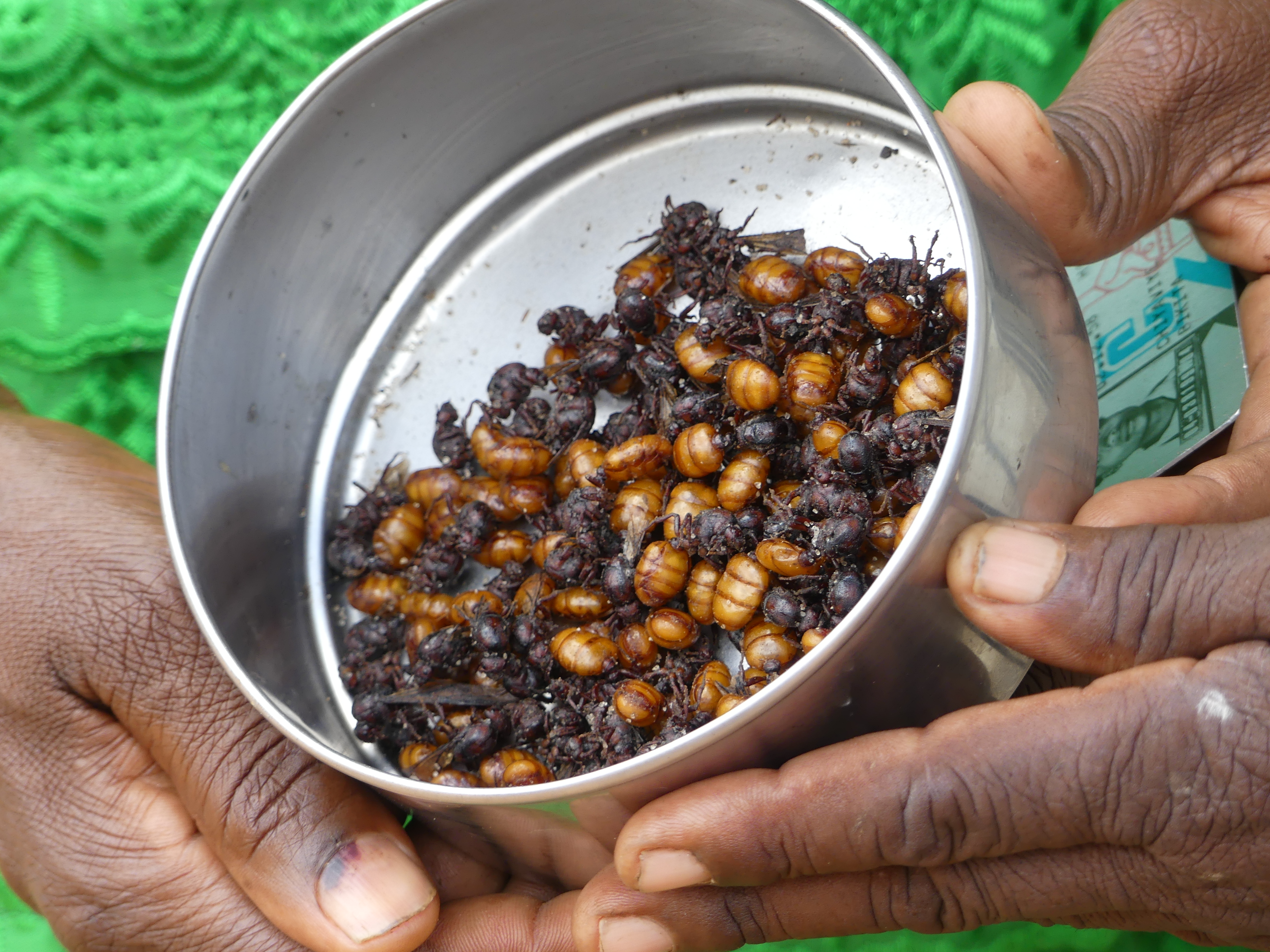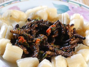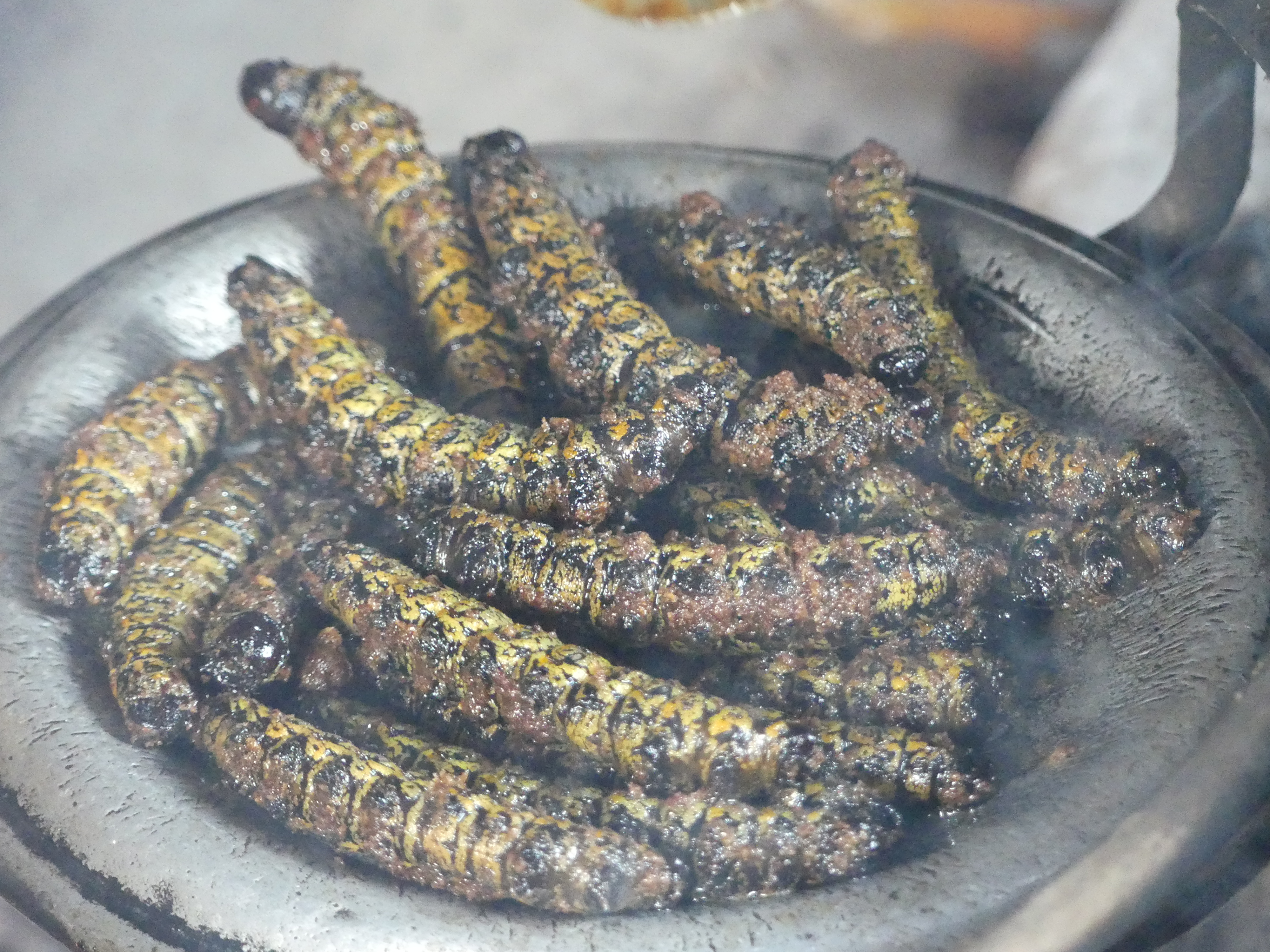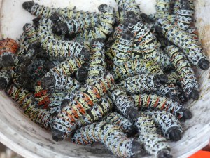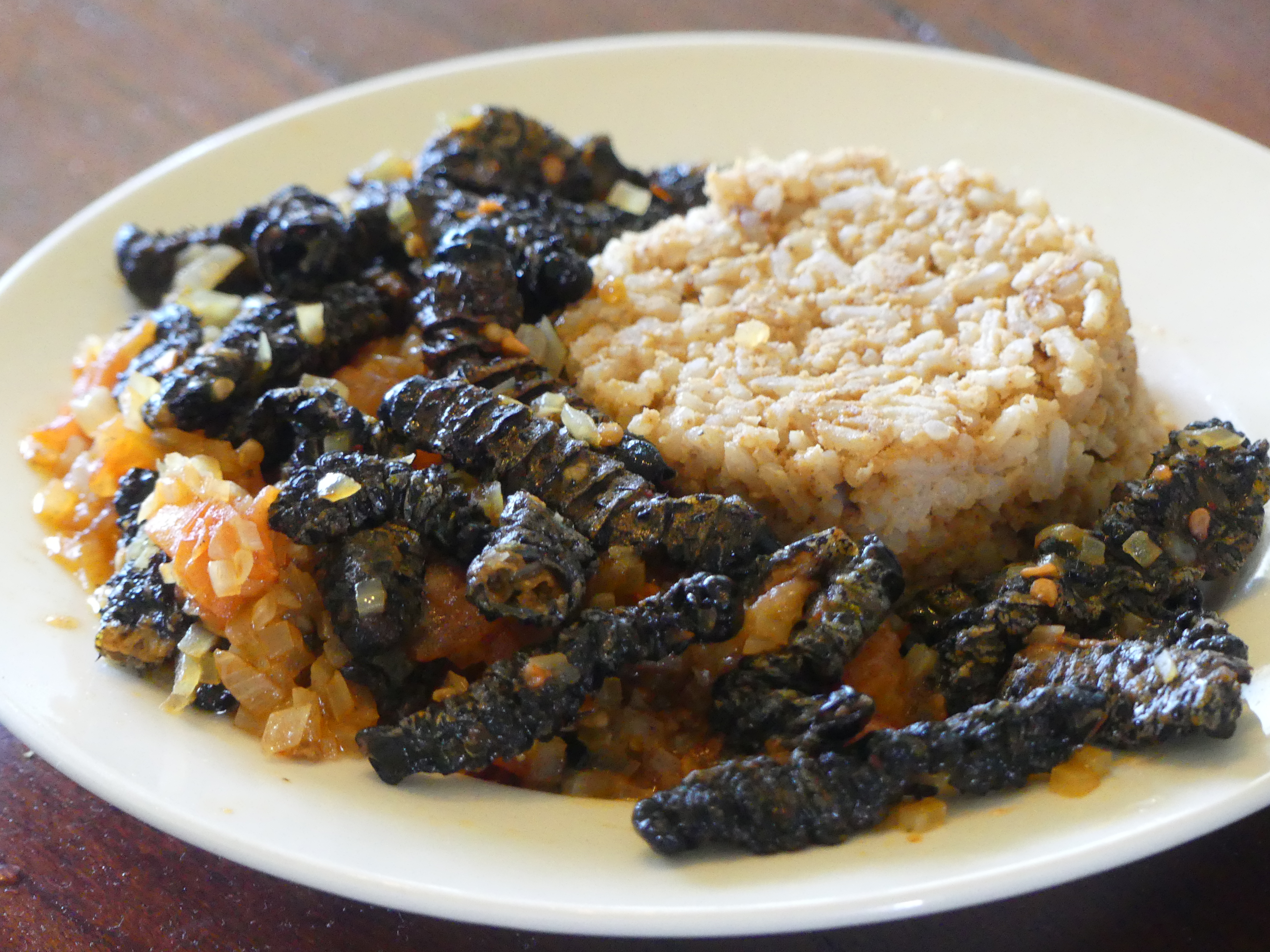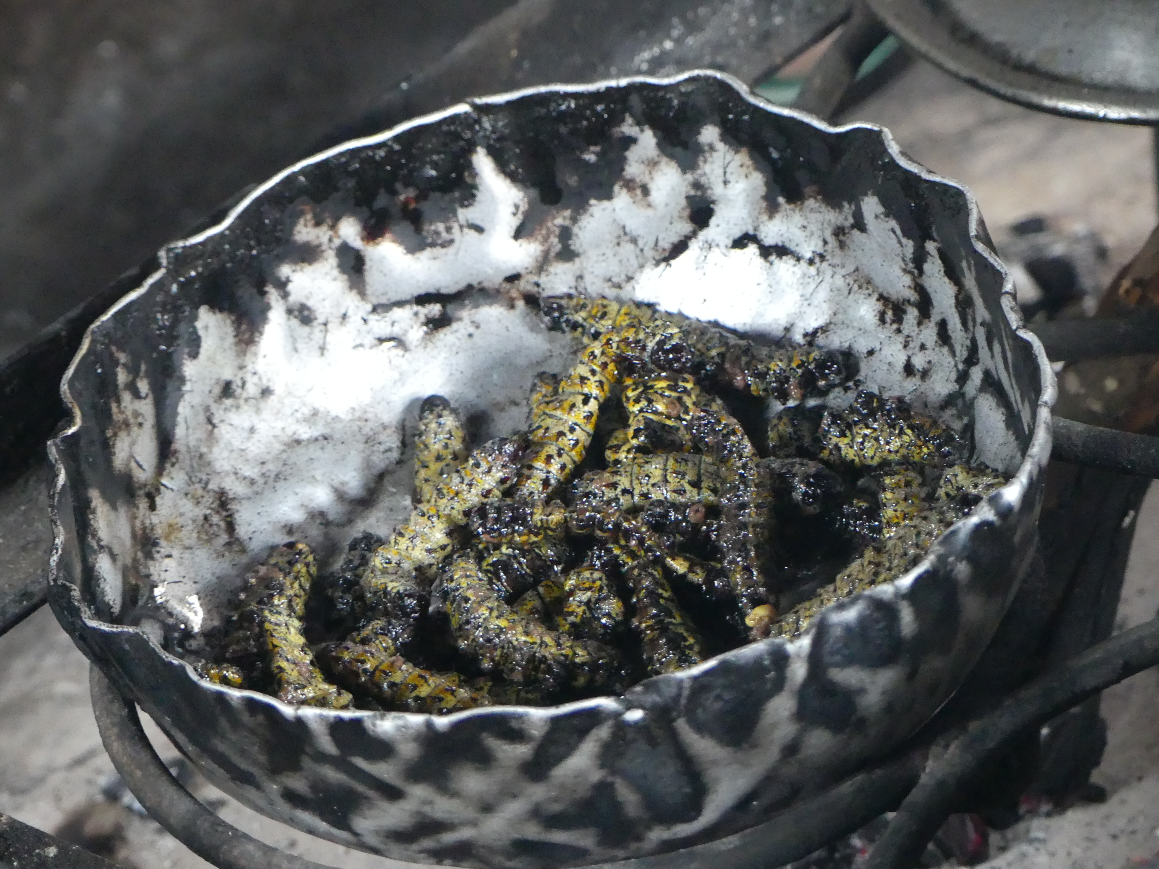Chenilles mopanes cuites, Marange, Zimbabwe