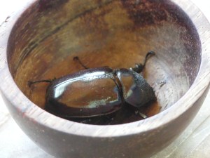 Scarabée rhinocéros sur le feu, Obala, Cameroun