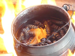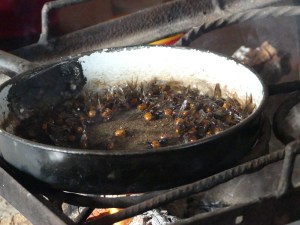 Cuisson de chenilles mopanes, Marange, Zimbabwe