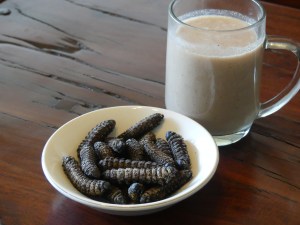 Chenilles mopane et verre de chibuku, Harare, Zimbabwe