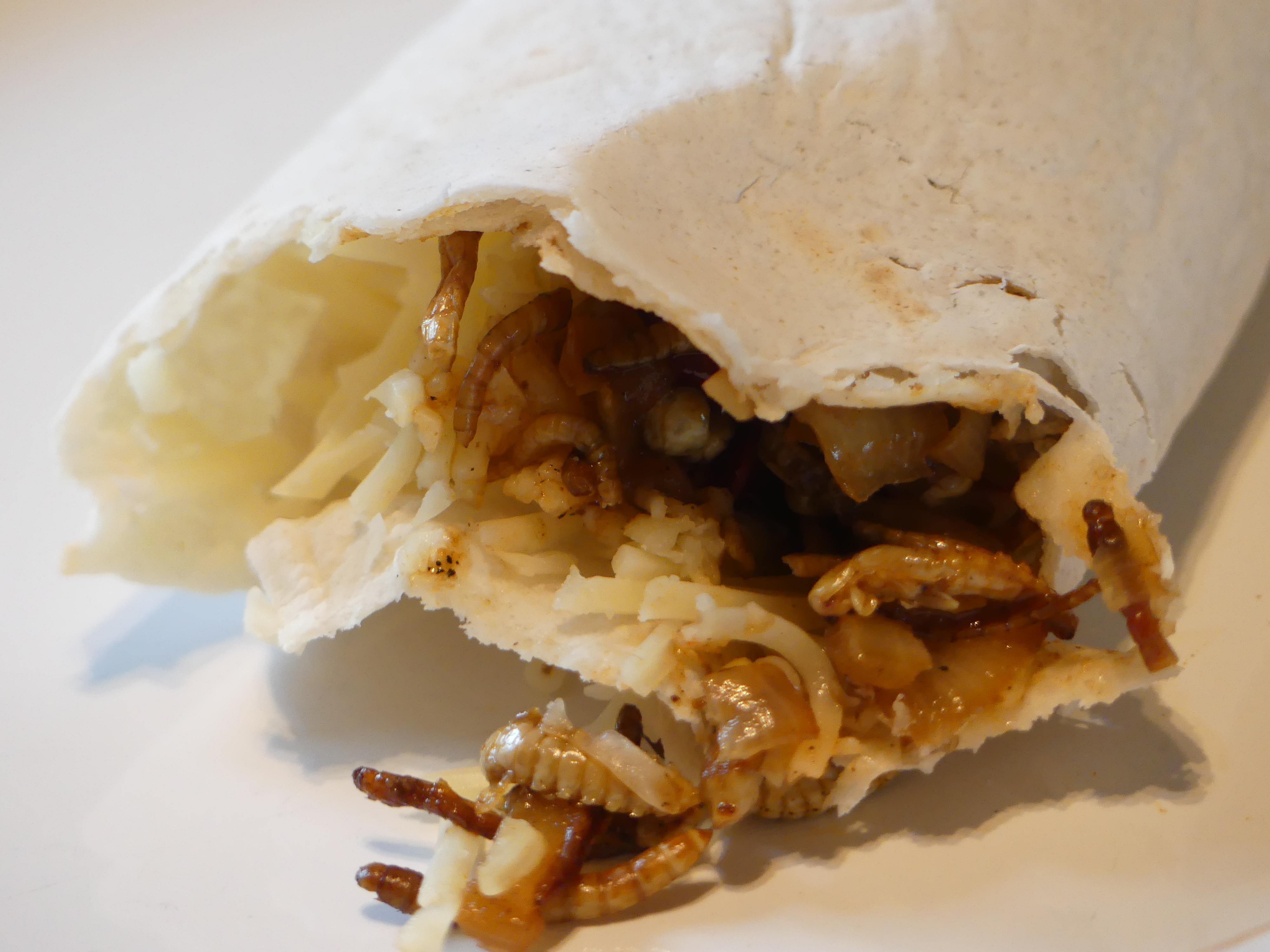 Préparation pour burrito aux nymphes et vers de farine, Paris, France