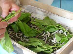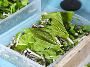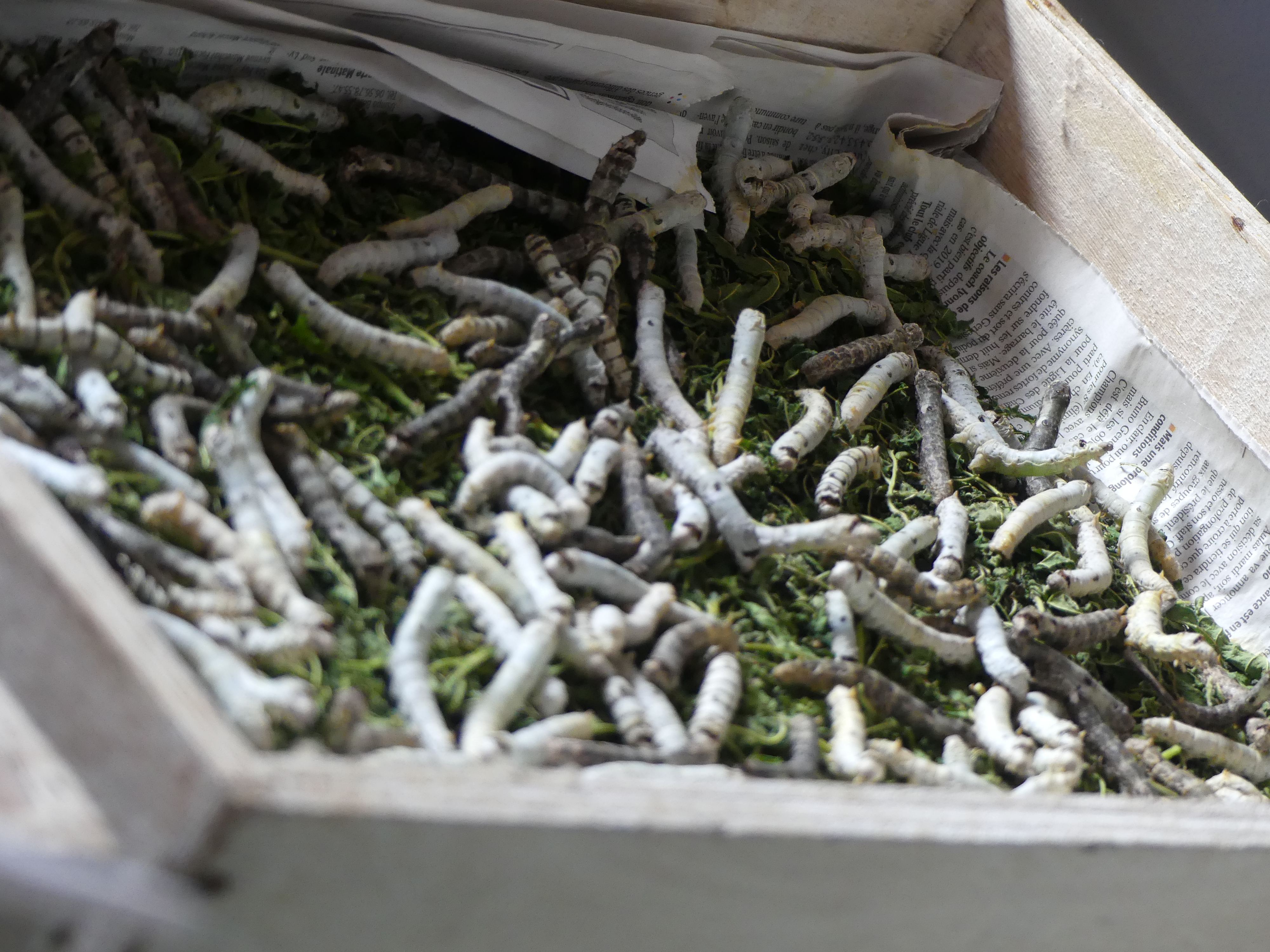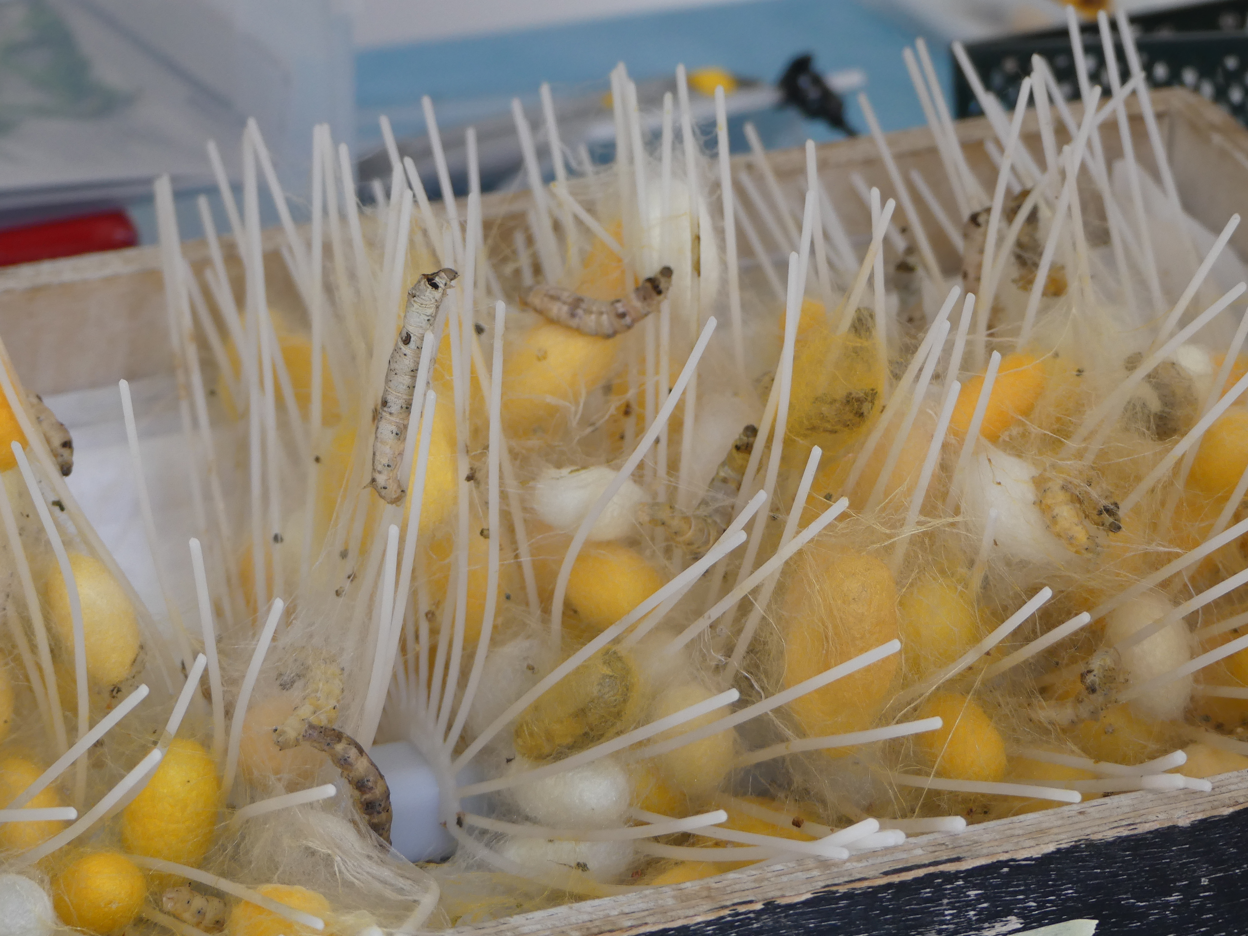 Récupération de la soie des cocons de vers à soie, centre royal de sériciculture de la reine Sirikit, Chiang Mai, Thaïlande
