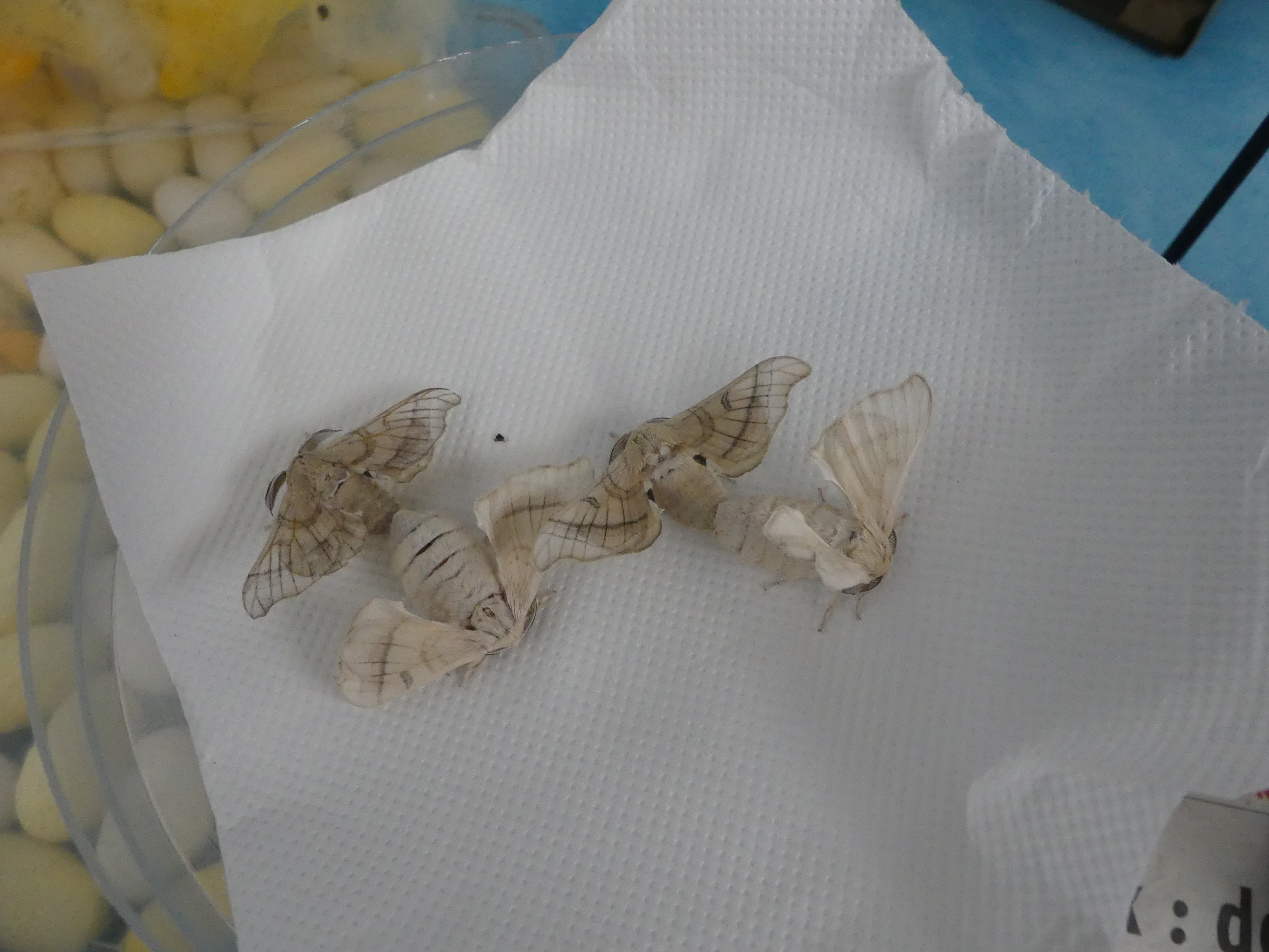 Papillons de vers à soie et leurs pontes, Thurins, France